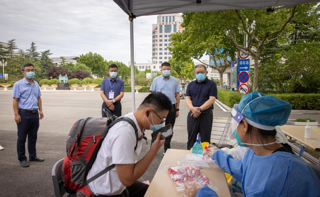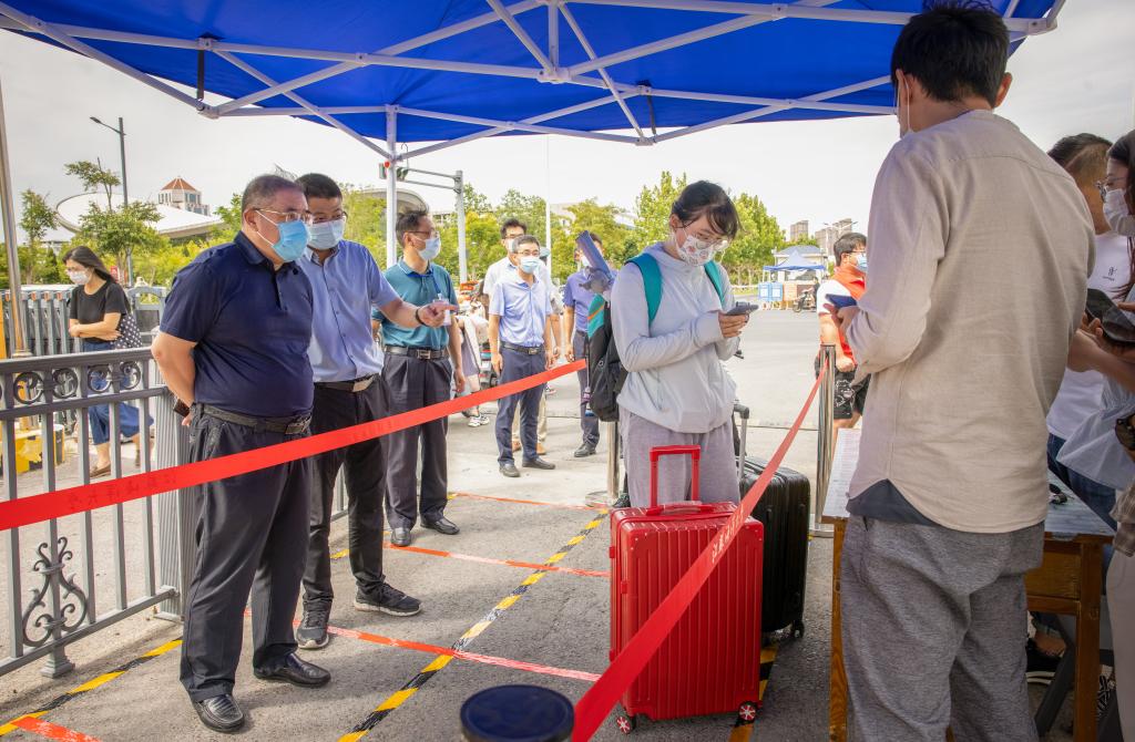 校领导还亲切慰问了奋战在一线的工作人员及青年志愿者们,叮嘱他们在报到现场注意做好个人防护,确保从紧从严、安全有序地完成学生返校报到工作。
