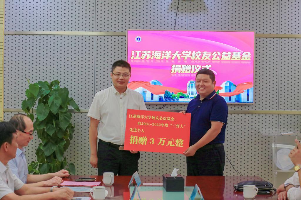 广东校友会名誉会长张志忠、深圳校友会执行会长侯泽门、副会长季绍燕、连云港校友会副会长李大钊作为校友代表参加捐赠仪式,校友总会秘书长孙盛杰、副秘书长陈太彬、办公室主任孙韶参加捐赠仪式。捐赠仪式由校友工作处处长马恒通主持。