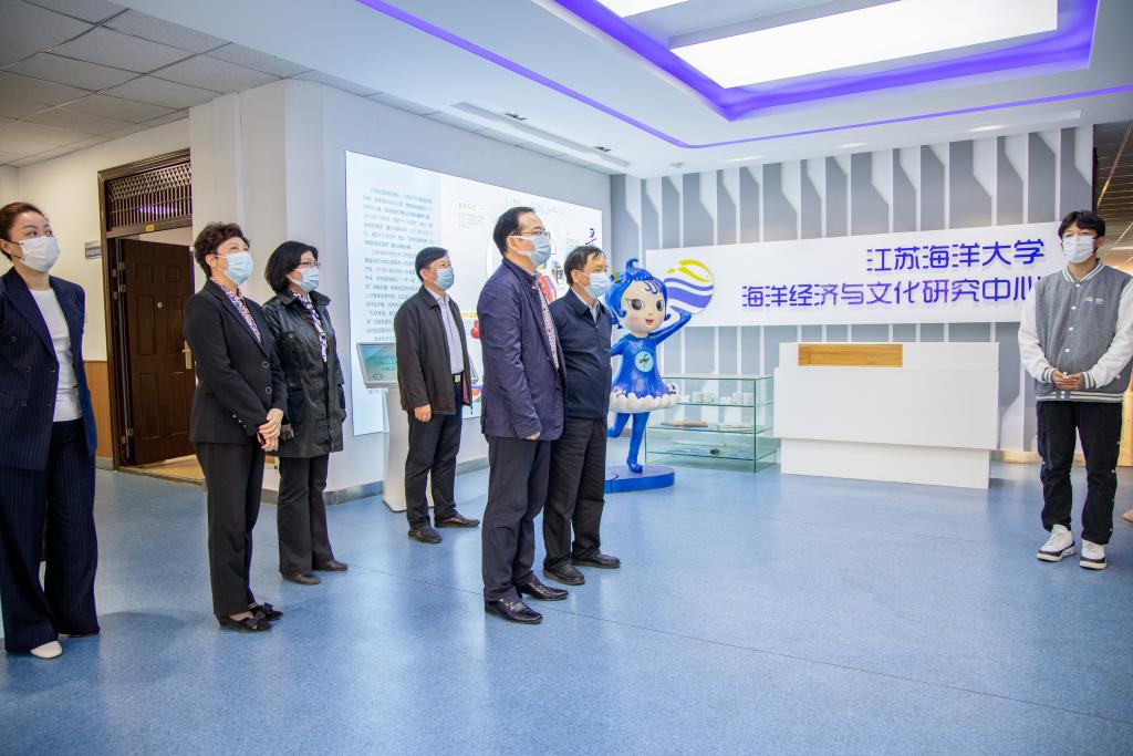 在海洋经济与文化研究中心,方韬一行在讲解员引导下,沿着认知海洋、经略海洋、人文海洋的展示主线,生动地了解了江苏省海洋资源的地理优势、海洋经济的发展现状、海洋科技创新的最新进展、海洋文化交融并进的历史脉络。