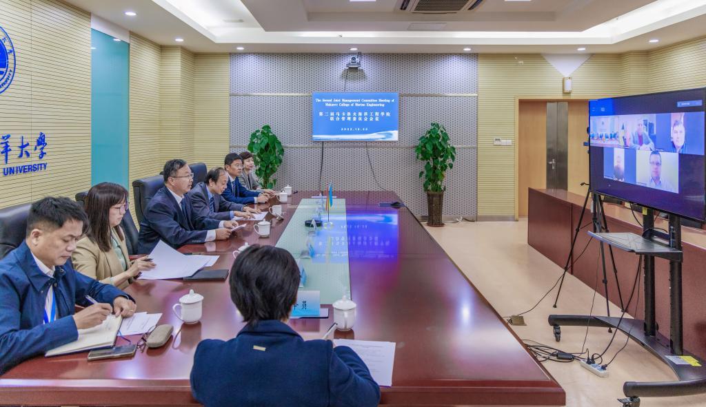 10月26日下午,我校在会议中心渤海厅与乌克兰马卡洛夫国立造船大学视频连线召开了第二届马卡洛夫海洋工程学院联合管理委员会会议。校长宁晓明、马卡洛夫国立造船大学校长Eugeniy Trushliakov、马卡洛夫海洋工程学院院长舒小平出席会议。会议由校长宁晓明主持。