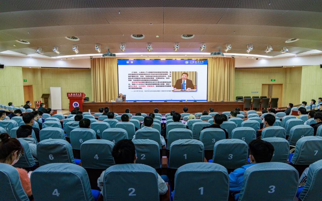 为深入学习贯彻习近平新时代中国特色社会主义思想和党的二十大精神,落实立德树人根本任务,增强研究生新生“知海、懂海、爱海”意识,10月26日下午,校党委书记王自力在会议中心黄海厅,以“铭记历史,筑梦海洋——我们的责任和使命”为题为2022级涉海专业研究生讲授“思政第一课”。