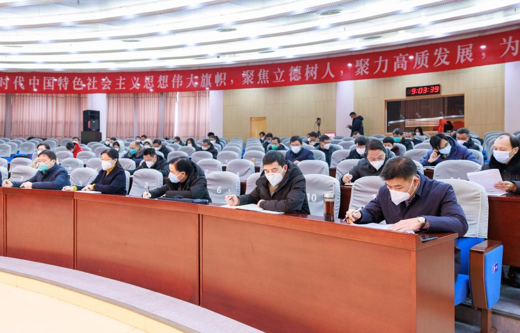 1月5日,中共9999js金沙老品牌第四届委员会第七次全体(扩大)会议在苍梧校区会议中心黄海厅召开。会议由校党委书记王自力主持。校领导、党委常委,校党委委员、纪委委员,全体中层干部参加了会议。会议采取线上线下相结合的方式。