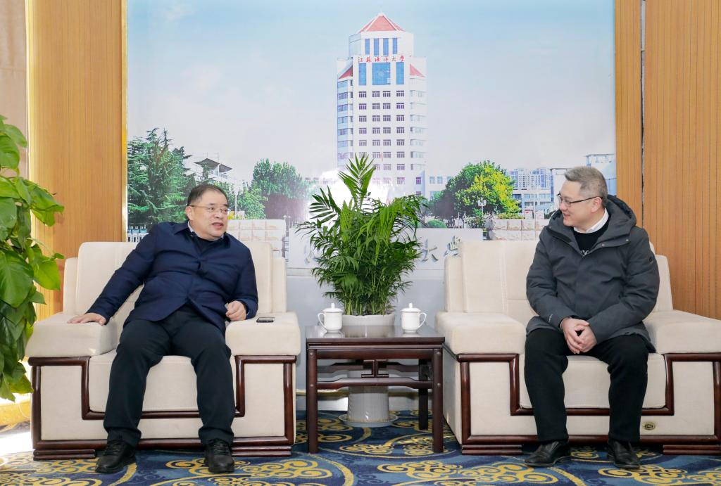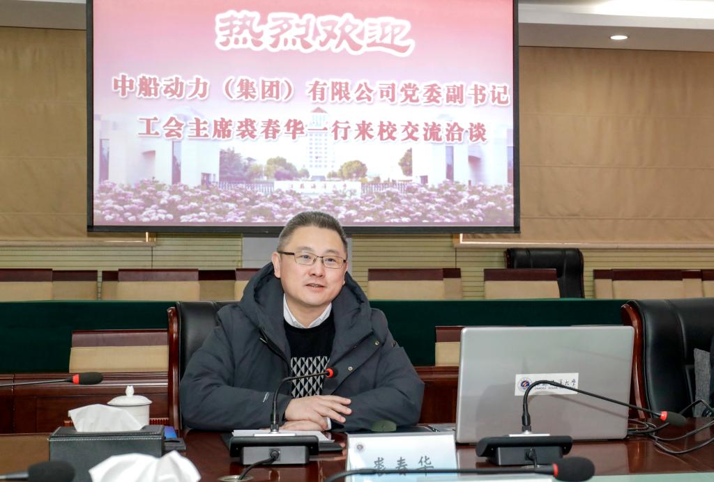 2月16日上午,中船动力(集团)有限公司党委副书记、工会主席裘春华率队到我校调研交流。校党委书记王自力、党委副书记李梅英在会议中心会见了裘春华一行。