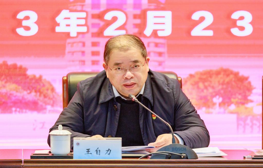 王自力强调,党的二十大精神是谋划学校未来发展的重大战略指引,也是学校做好高校党建与思想政治工作的根本遵循。我们要坚持以习近平新时代中国特色社会主义思想为指导,深刻领悟“两个确立”的决定性意义,增强“四个意识”、坚定“四个自信”、做到“两个维护”,紧扣学习宣传贯彻党的二十大精神这条主线,扎实做好学校党建和思想政治教育工作,为学校高质量发展提供坚强组织保证和强大精神力量。