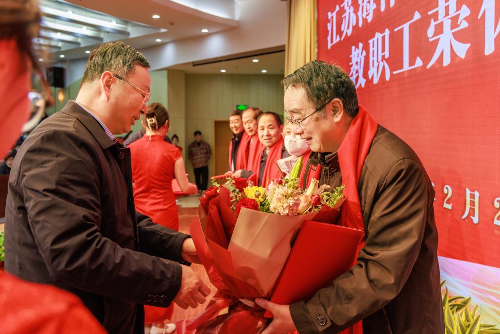 倾尽丹心育桃李,奉献韶华铸师魂。2月24日下午,学校在苍梧校区会议中心黄海厅举行了一场特别的仪式,向55名为学校挥洒青春与热血的荣休教职工致敬。校党委书记王自力、校长宁晓明代表学校为荣休教职工颁发证书。仪式由校党委副书记李梅英主持。副校长郑利军,校党委常委、组织部部长纪延光,校党委常委、宣传部部长杨雪英出席典礼。