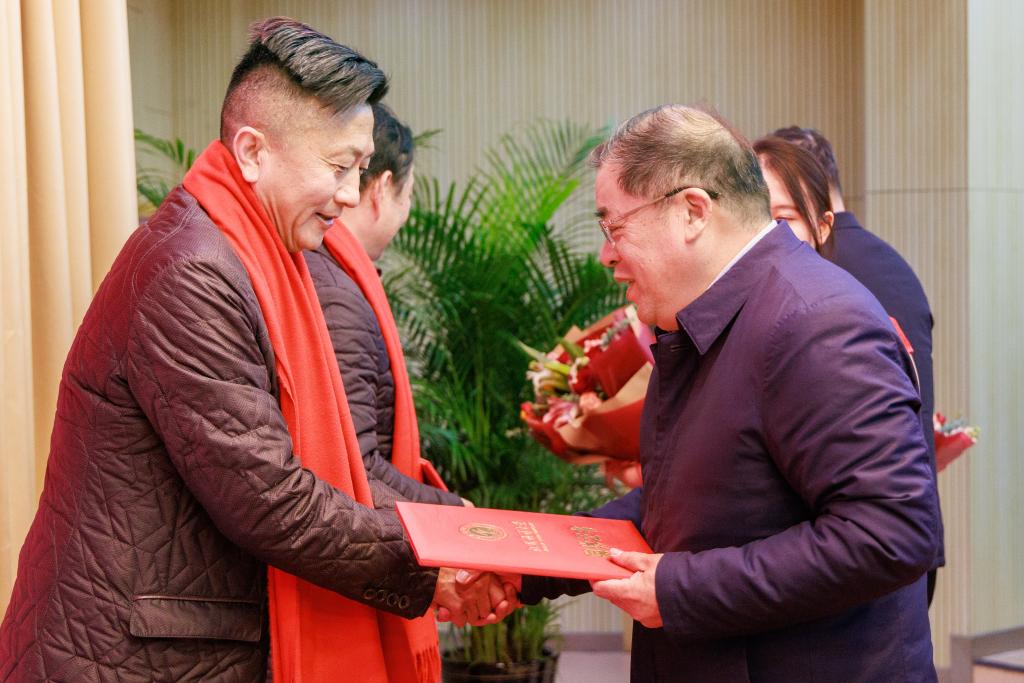 校党委书记王自力、校长宁晓明代表学校为荣休教职工颁发证书