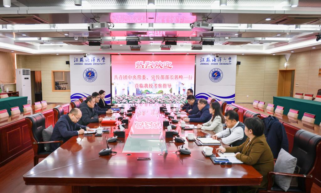 王自力对郭峰一行的来访表示欢迎。他简要介绍了学校近年来在人才培养、科学研究、学科建设等方面取得的成绩,以及学校“十四五”期间向海转型发展的目标规划。王自力表示,学校党委高度重视宣传思想工作和共青团工作,连续4年将社会主义核心价值观教育列入学校党政工作要点的重点工作项目,今年将“全国高校共青团新媒体重点工作室”建设列入重要工作。