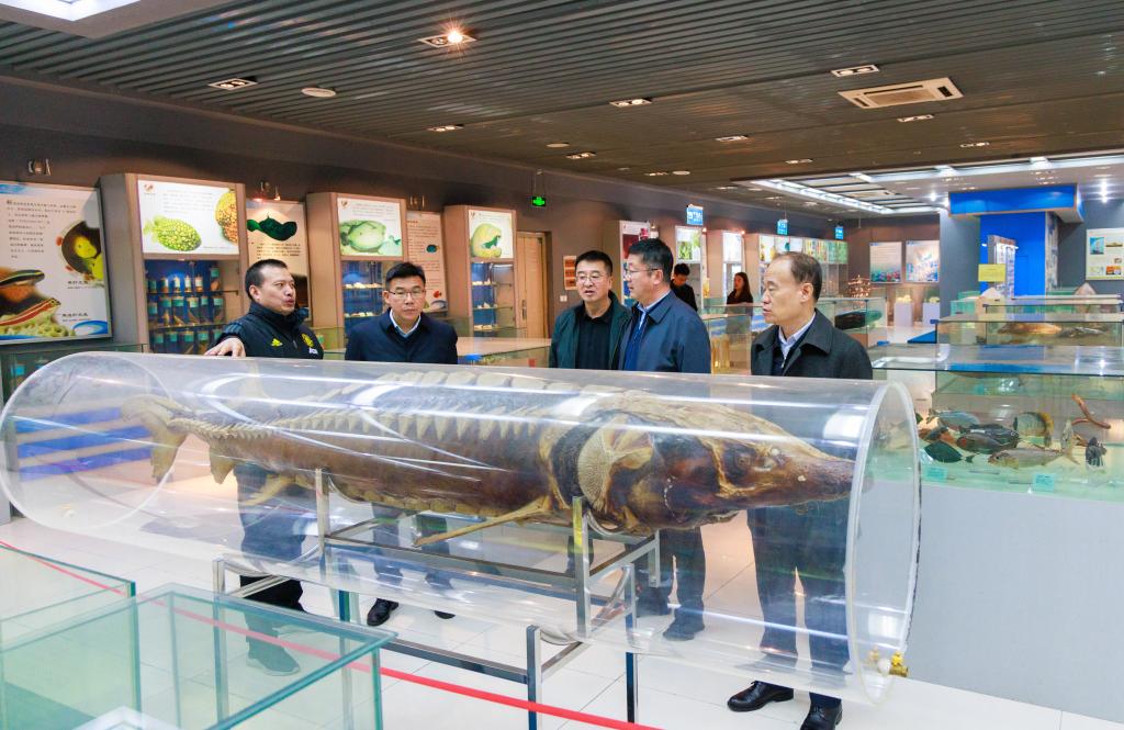 副校长郑利军陪同庄志军一行参观了海洋经济文化研究中心、海洋馆、海洋工程技术研究中心。