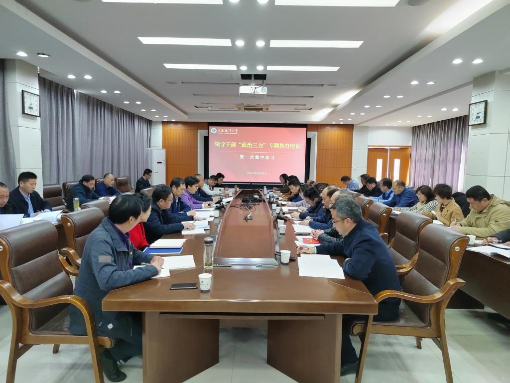 为提升学习实效,此次领导干部“政治三力”专题教育培训读书班分为5个小组,由校领导班子成员分别参加并指导所分管和联系单位部门处级领导干部组成的学习小组。开班仪式后,各小组按照既定学习方案开展了读书班第一次集中学习。