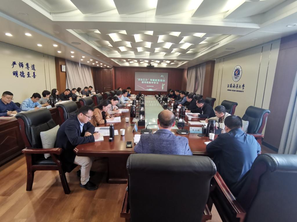 4月18日下午,我校举行学习贯彻习近平新时代中国特色社会主义思想主题教育暨领导干部“政治三力”专题教育培训读书班集中研学。全体校领导班子成员、中层干部参加学习。