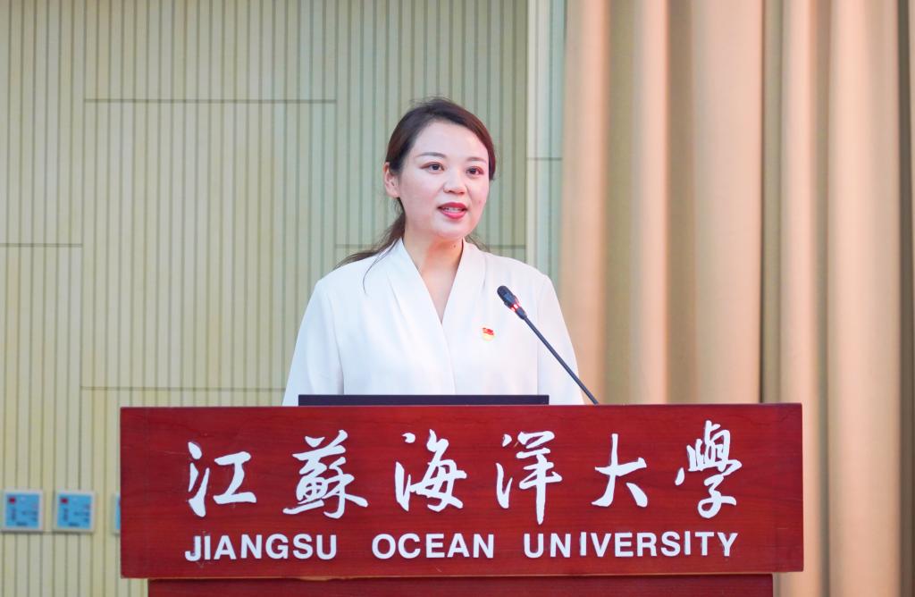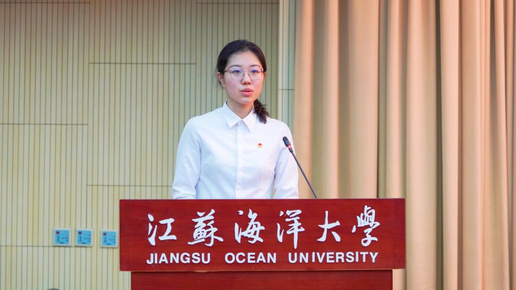 校五四红旗团委代表、海洋科学与水产学院团委书记唐振新,省优秀共青团员、文法学院龚钰宸先后作交流发言,分享工作经验,讲述青春故事。