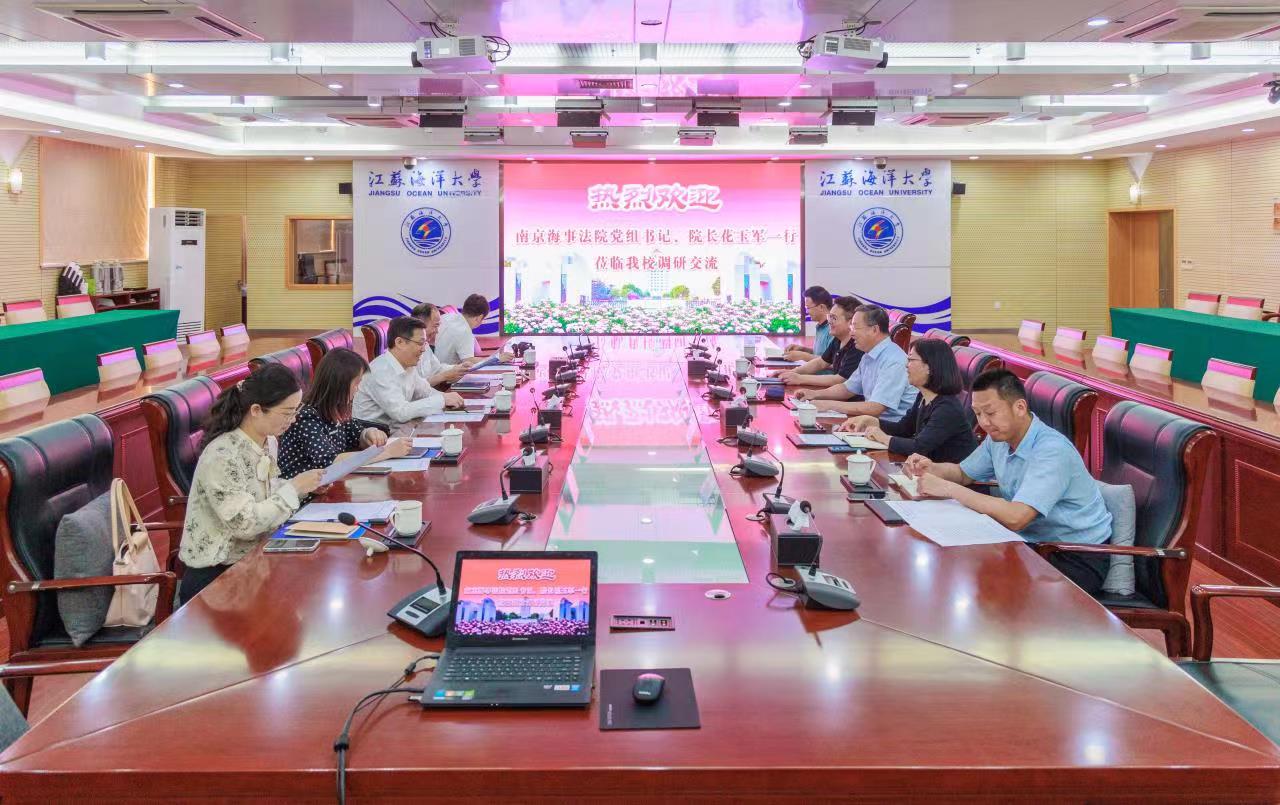 连云港海事法庭庭长俞旭明、南京海事审判庭副庭长何斐、连云港海事法庭副庭长曹智勇、南京海事法院综合办公室一级法官刘颖参加调研座谈。教务处、文法院长、研究生院相关负责人参加座谈。