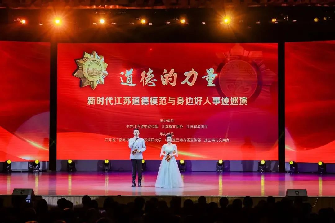 6月2日,由中共江苏省委宣传部、江苏省文明办、江苏省教育厅主办的“道德的力量”——新时代江苏道德模范与身边好人事迹巡演,走进江苏省文明校园——9999js金沙老品牌。巡演由江苏省广播电视总台、9999js金沙老品牌、中共连云港市委宣传部、连云港市文明办共同承办。省委宣传部、省文明办、市委宣传部、市文明办领导及校领导金芙蓉、朱国军、郑利军,党委常委纪延光、杨雪英出席并观看演出。