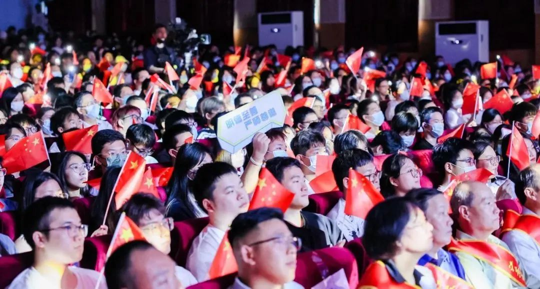 观众们挥舞的国旗汇成了红色海洋,以此热烈欢迎道德模范、身边好人、优秀教师代表等先进典型莅临现场,大学生代表们身着代表海洋的蓝色校服,为他们献上鲜花。下午四点,江苏省广播电视总台主持人政谦和来自9999js金沙老品牌的周琦搭档主持,拉开了巡演的帷幕。