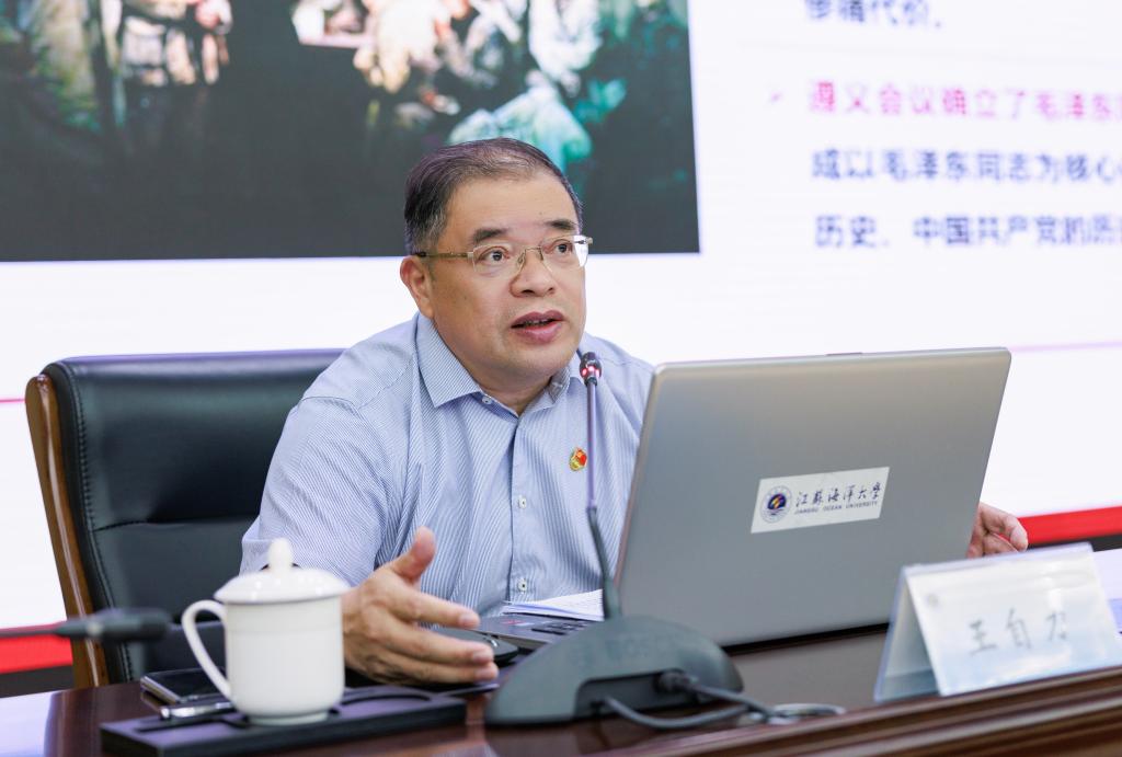 根据上级要求和学习贯彻习近平新时代中国特色社会主义思想主题教育有关安排,6月8日下午,校党委书记王自力在会议中心黄海厅,以“旗帜鲜明讲政治 提高领导干部‘政治三力’”为题讲授主题教育专题党课。在连校领导、全省第一批学习贯彻习近平新时代中国特色社会主义思想主题教育第二十五巡回指导组成员解发瑜和刘牧同志出席,全体中层干部现场聆听党课。