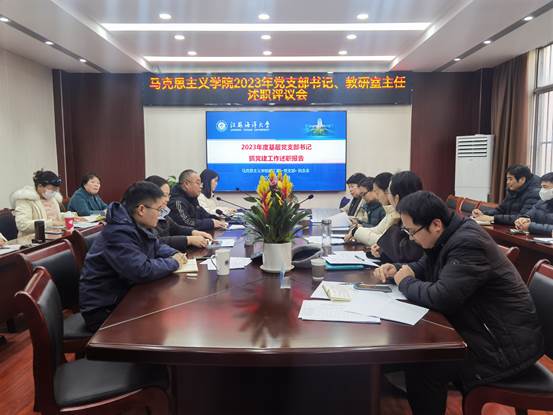 12月27日下午,马克思主义学院在学院会议室召开2023年度党支部书记、教研室主任述职评议会。机关相关职能部门负责人受邀担任评委,分别进行了评议。学院院长沈春梅及全体教职工参加述职评议会,学院党总支书记韩振响主持会议。